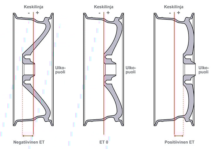ET / Offset = Etäisyys vanteen kiinnityslaipasta vanteen keskilinjaan millimetreissä.